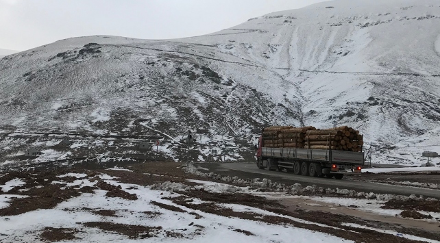 Giresun ile Sivas arasındaki ulaşımın sağlandığı Eğribel Geçidi'ne mevsimin ilk karı yağdı.