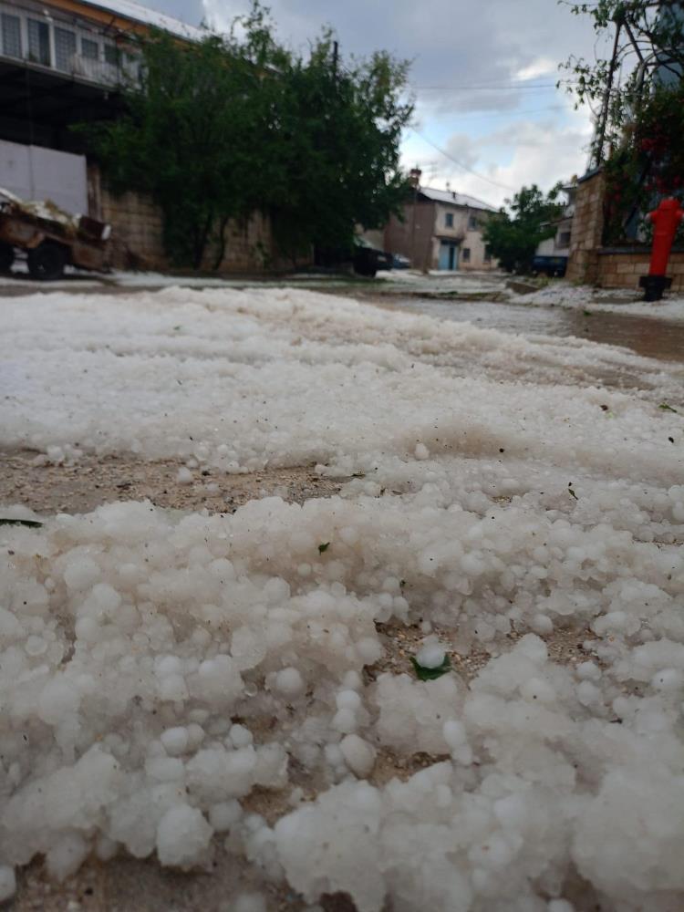 Bölgenin kavun karpuz üretim merkezi olarak bilinen Akalan Mahallesi’nde daha çok hasara yol açan dolu yağışı, yaklaşık yarım saat devam edince her taraf sanki kar yağmışçasına beyaz örtüyle kaplandı.