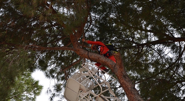 Okulun öğrencilerinden Caner Tetik, kedinin dünden beri ağaçta durduğunu, bugün de inmediğini görünce ekiplere haber verdiklerini fakat kedinin inmemekte ısrar ettiğini söyledi.