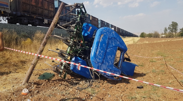 Malatya'dan Diyarbakır yönüne giden yük treni, dün, merkez Hankendi köyü mevkisindeki kontrolsüz hemzemin geçitte tarladan dönen Sedat Gür'ün kullandığı plakasız traktöre çarpmıştı.