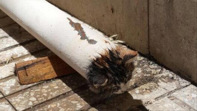 Malatya'da elektrik direğine sıkışan yavru kedi, itfaiye ekipleri tarafından kurtarıldı.