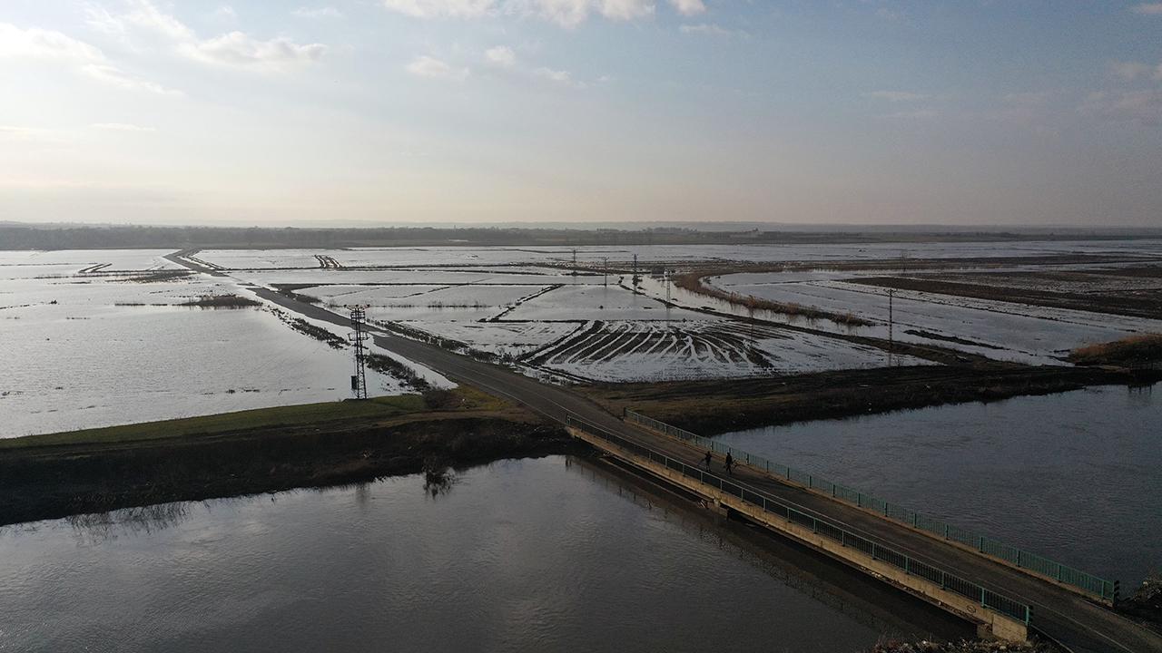 Edirne'nin Uzunköprü ilçesinde ise nehir suyu çeltik tarlalarına yayıldı.
