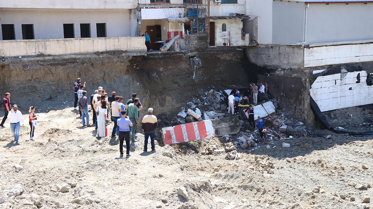 Çukurun açılması sonrası otelin bitişiğinde yer alan tek katlı eklentisi, zeminindeki toprağın boşalmasının da etkisiyle çukura çöktü.
