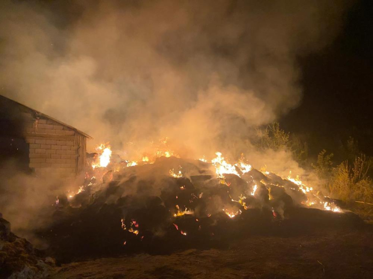 İçerisinde yaklaşık 100 ton saman bulunan depodaki yangın uzun uğraşlar sonucu kontrol altına alınarak soğutma çalışması yapıldı.