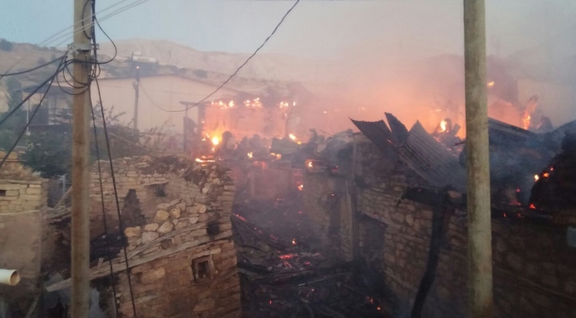 Yangında, 11 ev ile altlarındaki ahır kullanılamaz hale geldi.