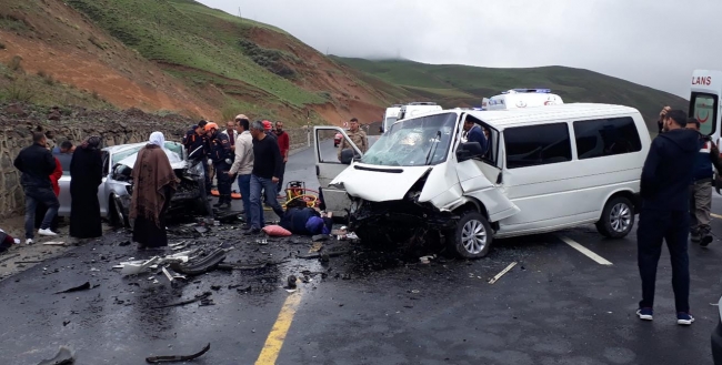 Alınan bilgiye göre, Erzurum-Bingöl karayolunda sürücülerinin kimlikleri henüz belirlenemeyen 25 ET 535 plakalı minibüs ile 34 JV 7769 plakalı otomobil, Köseler köyü yakınlarında çarpıştı.