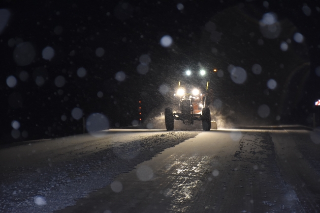 Karayolları 18. Bölge Müdürlüğü ekipleri de yolda kar küreme çalışmasına başladı.