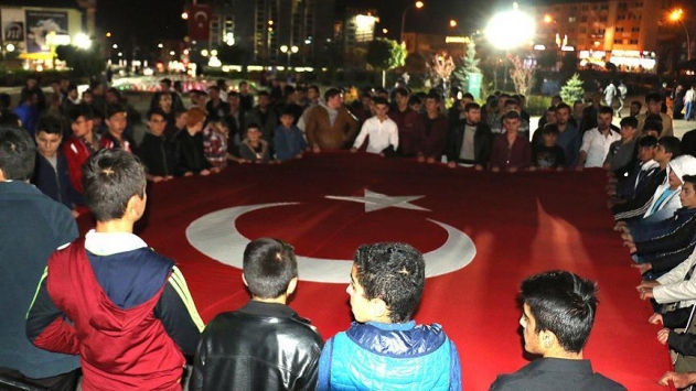 Kent meydanında toplanan vatandaşlar, şehitler anısına saygı duruşunda bulunulmasının ardından İstiklal Marşı okuldu.