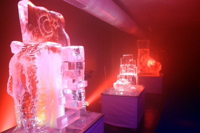 15 Temmuz darbe girişiminde gösterilen direnişi, birlikteliği ve iradeyi belleklerde diri tutmak, şehitleri yad etmek, verilen mücadeleye dikkat çekmek için hazırlanan "Maan-Ice Sergisi", buz malzeme ile üretilen eserleri ziyaretçileriyle buluşturuyor.
