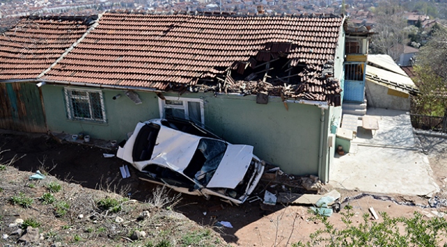 Eskişehir'de kontrolden çıkarak yolun altındaki bir evin çatısına çarpıp bahçeye devrilen otomobilin sürücüsü yaralandı.