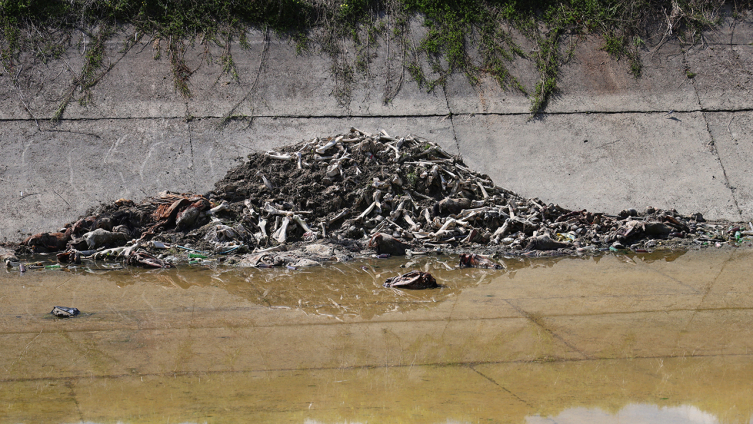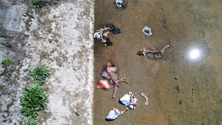 Ali Hocalı Mahallesi’ndeki sulama kanalında yüzlerce at ve eşeğin kesildikten sonra geriye kalan parçalarının su birikintisi içine atıldığı, çevredeki köpek ve kediler tarafından parçaların çıkartılarak etrafa savrulduğu görüldü.