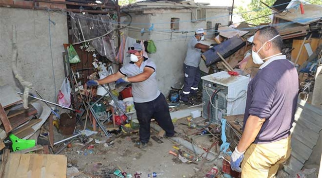 Zabıta Müdürlüğü ile Temizlik İşleri Müdürlüğü ekiplerince 7 traktör çöp çıkarılan evde, temizlik çalışması yapıldı. Çöplerin tahliyesinin ardından ev ilaçlandı.