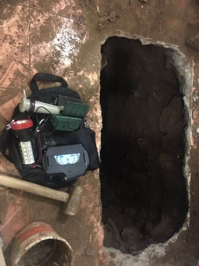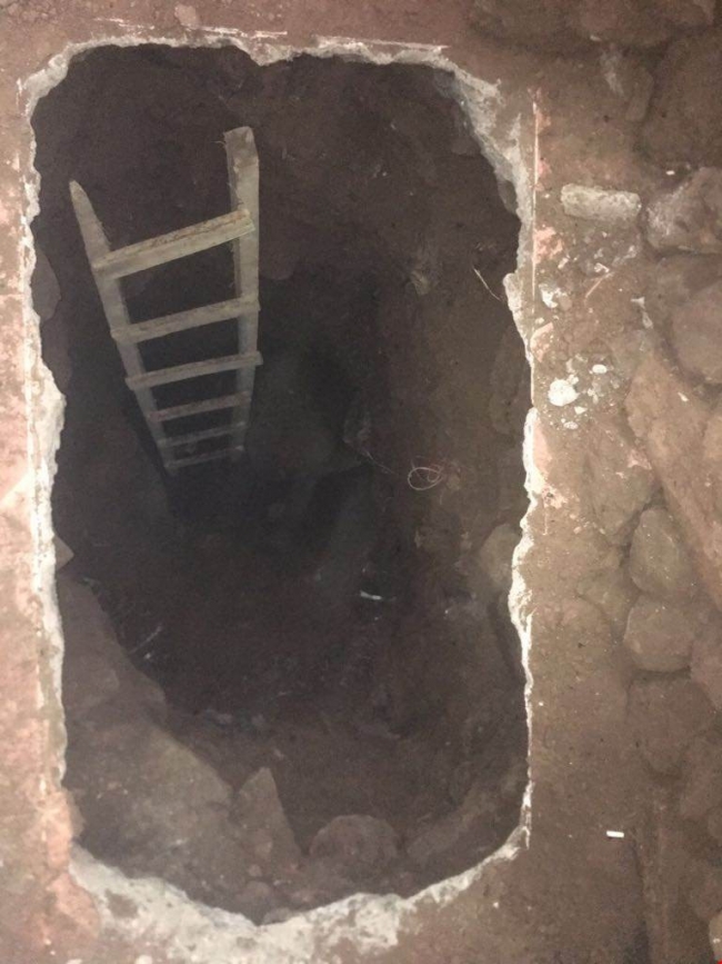 Operasyonda evin mutfak kısmında 1 metre genişliğinde, 5-6 metre derinliğinde kazı yapıldığı ortaya çıktı.