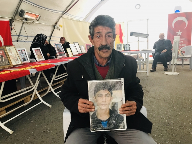 Oğlunu Kur'an kursundan kaçırdıklarını ifade eden Salim, "Oğlum oruçken götürdüler. Çocuğumu HDP'den istiyorum. Çocuğumu onlar götürdü. Oğlum gelene kadar buradayım. Oğlum gel, devletine teslim ol. Hastayım yavrum, seni özlüyoruz. Sesimi duyuyorsan gel, evine dön yavrum." diye konuştu.