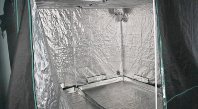 Müstakil evde yapılan incelemede, salon bölümünde, çadır şeklinde motorlu havalandırma sistemi kurulmuş uyuşturucu madde imalathanesi bulunduğu ortaya çıktı.