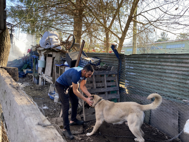 İlker T, ara ara kulübedeki köpeğinin yanına giderek onu sevdi.