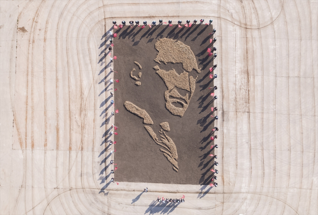 Sonrasında fabrika işçileri ve sendika personeli, bir haftalık çalışmayla, alan üzerinde 8 ton şeker pancarı kullanarak Atatürk'ün silüetini oluşturdu.
