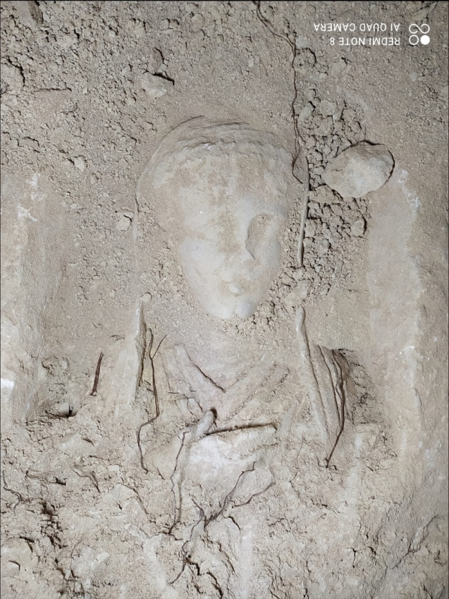 Şüphelilerin çıkardığı 76 santimetre uzunluğunda, 67 santimetre enindeki kadın heykeline ise el konuldu.