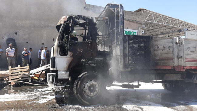 Nizip Sanayi Sitesi'ndeki bir tamirhanede, kamyona kaynak yapıldığı sırada kıvılcımlar yakıt deposuna sıçradı.