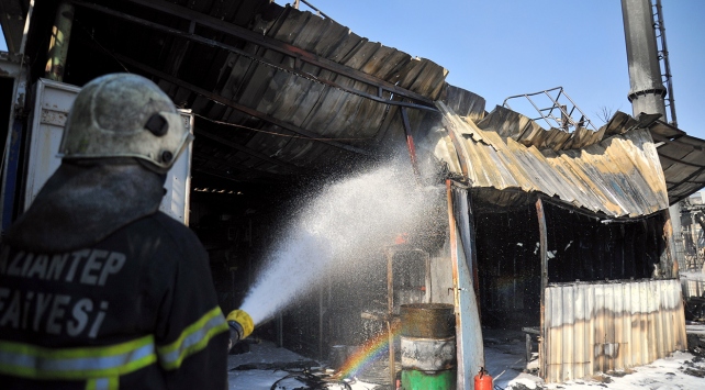 Gaziantep'te bir vinç garajında çıkan yangın kontrol altına alındı.