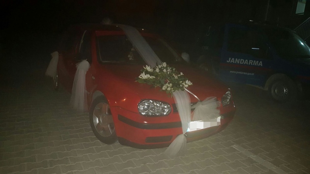 Alınan bilgiye göre, Pamukkale İlçe Jandarma Komutanlığı ekipleri, önceki gün yol denetimi sırasında gelin aracı gibi süslenmiş bir otomobilden şüphelenerek durdurdu.