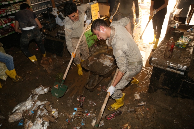 [Fotoğraf: AA]İlçe sakinleri de iş yerlerinin temizlenmesine destek veren askerlere teşekkürlerini sundu