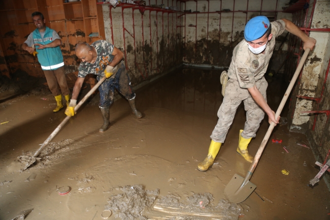 İlçede iş yerlerinin temizlenmesinde etkin rol üstlenen askerler, vatandaşların yaralarının kısa sürede sarılması için gayret gösteriyor.