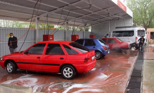 [Fotoğraf: İHA]Kentte hafta sonu uygulanan sokağa çıkma kısıtlamasının da sona ermesiyle aracı çamurla kaplanan vatandaşlar oto yıkamacılara akın etti.