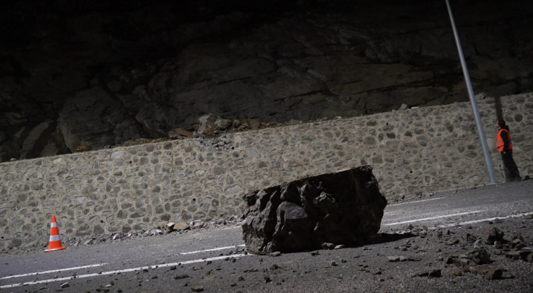 Hacıemin 3 Tüneli'nin Trabzon istikameti çıkışında taş düşmesi sonucu heyelan meydana geldi.