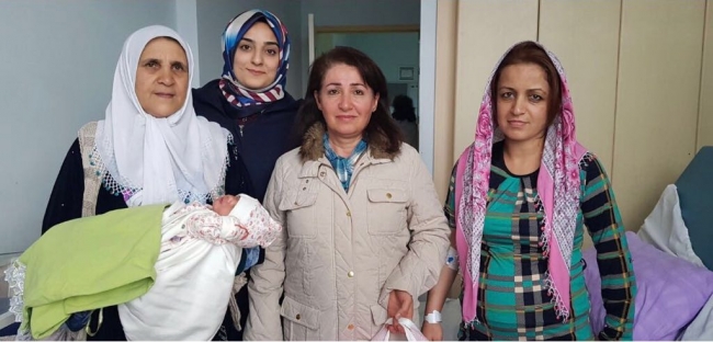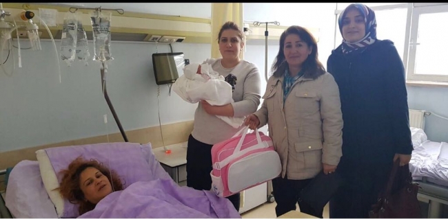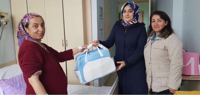 Ekipler, burada sohbet ettikleri yeni doğum yapan annelere ve anne adaylarına içinde bebek malzemelerinin bulunduğu çeşitli hediye paketleri verdi.