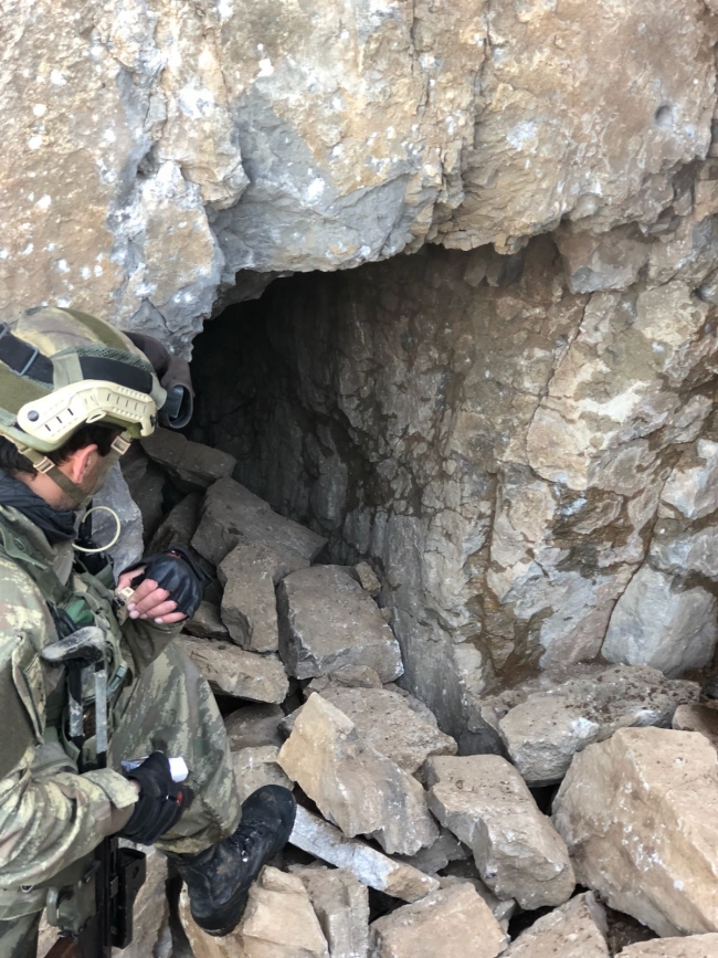 Bu kapsamda Balkaya Dağları'nda arama tarama faaliyetini sürdüren Mehmetçik, teröristlerce kullanılan iki girişli, 125 metre uzunluğunda, yer yer 3 metre yüksekliğinde ve bir metre genişliğinde mağara buldu.