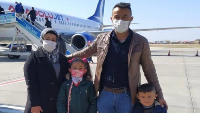 Milli Savunma Bakanlığı'nın sosyal medya hesabında Hira Karahan ve ailesinin Ankara'ya gelmek için uçağa bindikleri anların görüntüsü paylaşıldı.