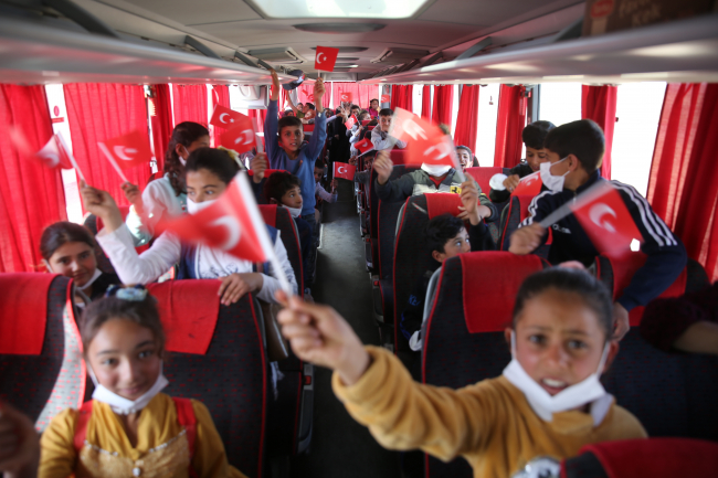 Suriye'nin Haseke iline bağlı olan ve Barış Pınarı Harekatı'yla terör örgütü YPG/PKK'dan temizlenen Rasulayn ilçesindeki 5 köyden 100 çocuk, etkinlik kapsamında, öğretmenleri eşliğinde zırhlı araçlarla Mardin'in Kızıltepe ilçesindeki Şehit Çoban Hudut Karakolu bölgesindeki güvenlik noktasına getirildi.