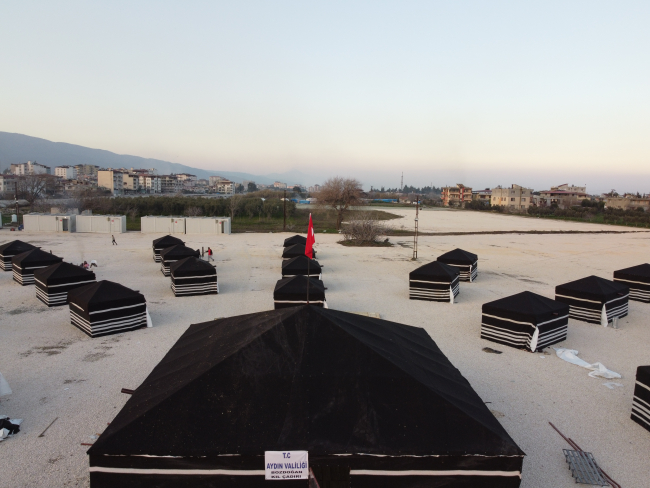 Depremde büyük yıkıma uğrayan Antakya ilçesinde enkaz kaldırma çalışmaları da sürüyor. Çadır ve konteyner kentlerin kurulduğu bölgeye, Aydın'ın Bozdoğan Kaymakamlığı öncülüğünde, konargöçerlerin kullandığı kıl çadırlar getirildi.