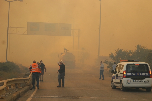 [Fotoğraf: AA]Yangın nedeniyle Belen-İskenderun kara yolu da trafiğe kapatıldı.