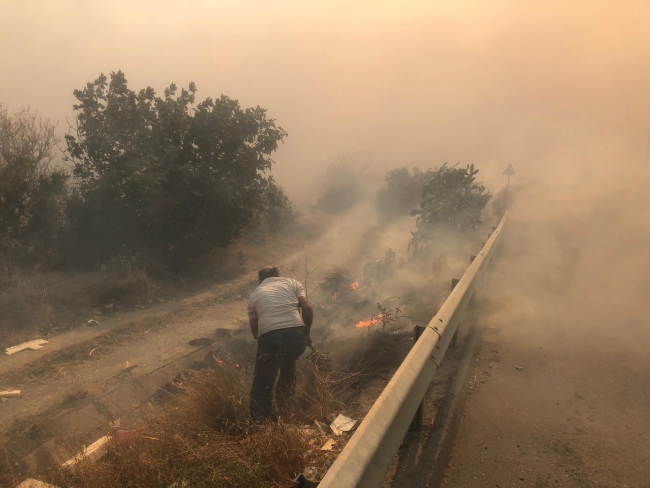 [Fotoğraf: AA]Vatandaşların da yangını söndürme çalışmalarına yardım ettiği görüldü.