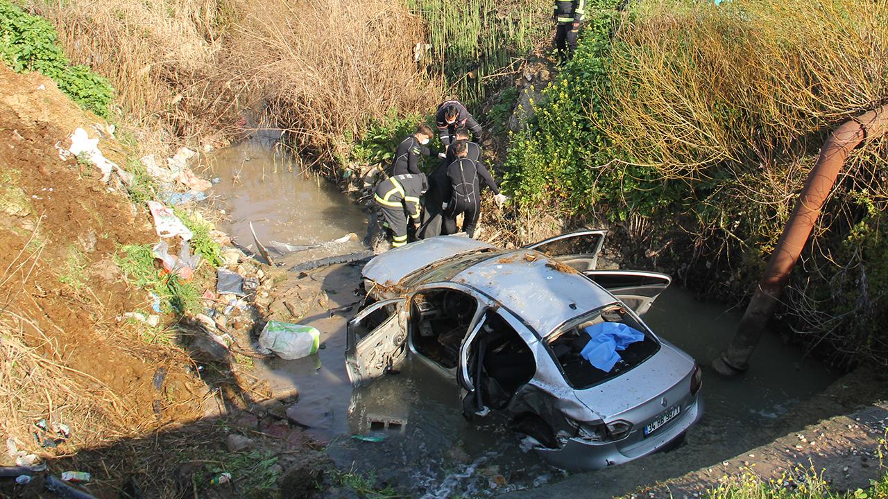 Çarpışmanın etkisiyle savrulan otomobil dereye devrildi.