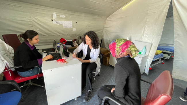 Sahra hastanesine Zonguldak'tan görevlendirilen Kadın Hastalıkları ve Doğum Uzmanı Dr. Doğa Nur Mutlu Oruç, ilgili bölümde 8 doktorla görev yaptıklarını söyledi.