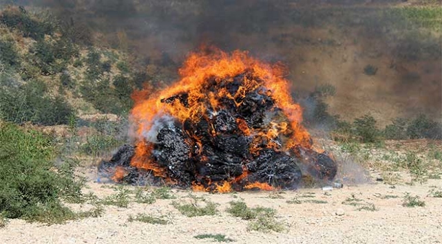 Kontrolün ardından uyuşturucular, benzin yardımıyla Bağrıyanık Mahallesi'ndeki atış poligonunda yakıldı.