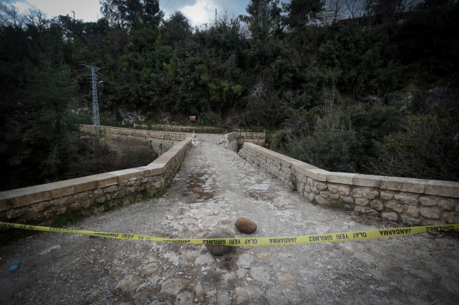 Musa Dağı'nın eteklerinde yer alan, genişliği 3,77 metre ve boyu 36,54 metre olan Osmanlı dönemi eseri, hasarın ardından ulaşıma kapatıldı.