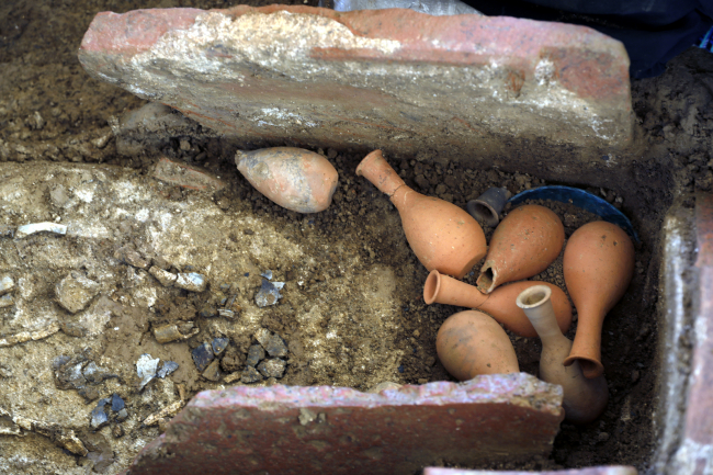 Daha sonra kazılar ilerledikçe, peronlar da alındıktan sonra mimari bütünlük ortaya çıktı. Yaklaşık 5 gün önce yeni bir bulguyla karşı karşıya kaldık. Geç Helenistik Döneme ait bir mezar ortaya çıktı. Mezarın kendi içinde buluntuları da olduğu için dönemsel olarak çok net bir veri sağlıyor. Mezar içinde ölü hediyesi olarak konulmuş pişmiş topraktan şişelerden mezarın tarihini de netleştirebildik. Geç Helenistik Döneme ait bir mezar.