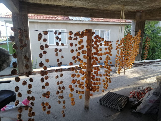 Arama yapmak için şüpheli Kadir K’nın adresine giden jandarmalar, evin terasında soyulup ipe dizilerek kuruması için askıya takılan Trabzon hurmalarını gördü.