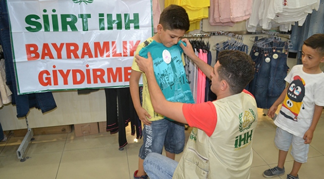 İHH İnsani Yardım Derneği, Siirt'te hayırseverlerin desteğiyle 350 yetim çocuğa bayramlık kıyafet yardımında bulundu.
