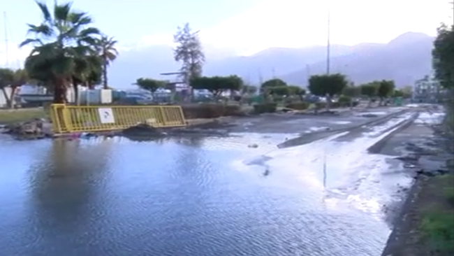 Gece su altında kalan Atatürk Bulvarı'nın bazı kesimlerinde deniz suyu çekilirken, Anıt Meydanı'nda ve sahil bandında su birikintileri bulunuyor. Öte yandan ilçede lodosun etkisi sürüyor.