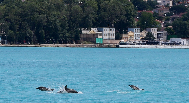 İstanbul Boğazı'nda öğlen saatlerinde geçen yunus sürüsünü vatandaşlar hayranlıkla seyretti. Tarabya açıklarında denizde dalıp çıkan yunuslar vatandaşlara keyifli dakikalar yaşattı. Yunusları gören olta balıkçıları ve sahilde yürüyüş yapan vatandaşlar bu güzel manzarayı cep telefonlarıyla kaydetti.