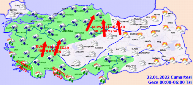 Tahminlere göre, sıcaklıklar akşam saatlerinden itibaren hissedilir derecede düşecek. Bugün İstanbul'un büyük bölümünde kuvvetli yağmur, akşam saatlerinde Çatalca, Arnavutköy, Sarıyer, Beykoz ve Şile'de karla karışık yağmur, gece yarısı itibariyle de kentin tümünde kuvvetli kar yağışı bekleniyor.