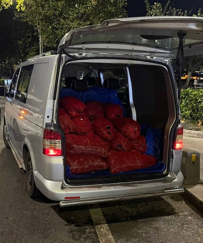 T.S'nin kullandığı araçta 50 çuval içerisinde 1 ton midye ele geçirildi.