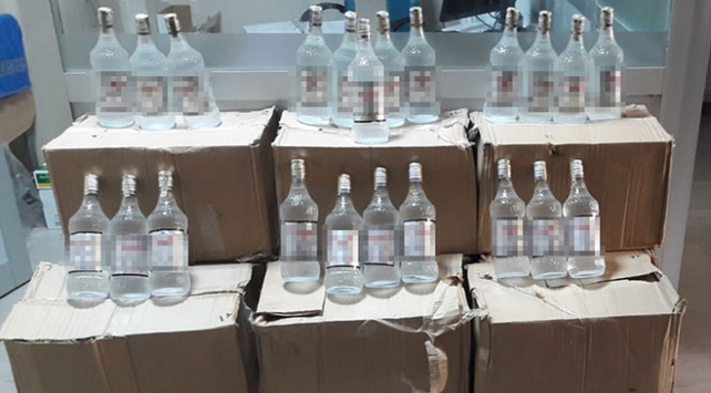 Araçta 242 şişe kaçak içki ele geçirilirken, G.K. ve M.T. gözaltına alındı.