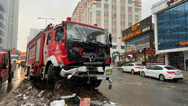 Kaza nedeniyle itfaiye aracında hasar oluştu.