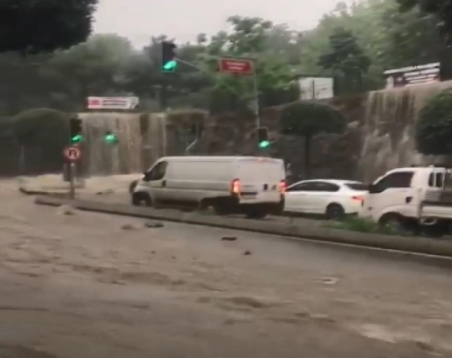 Eyüpsultan'da, yapılan uyarıların ardından etkili olan sağanak yağış sonrası bir cadde sular altında kaldı. Yaşananlar bir vatandaşın cep telefonu kamerasına yansıdı.